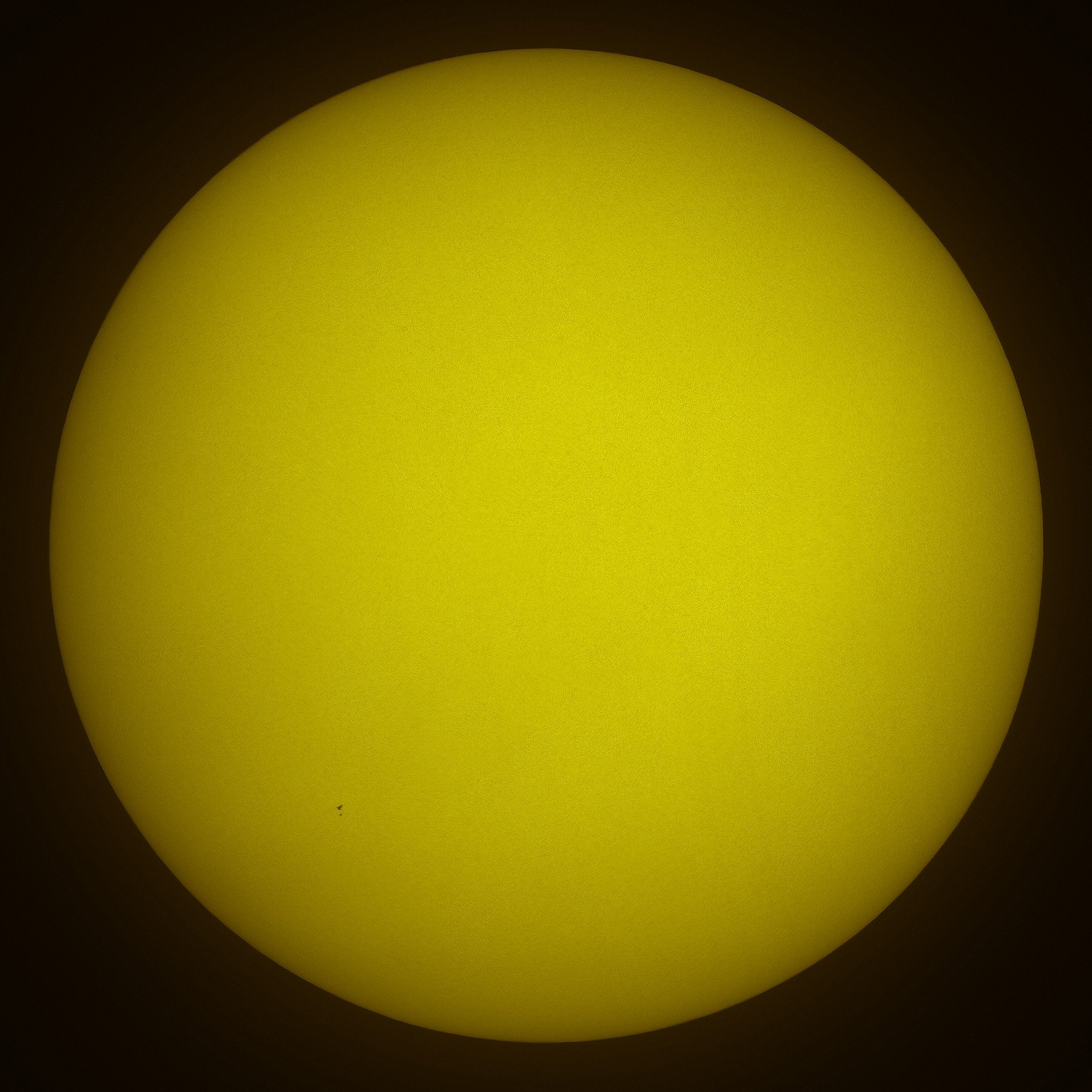 Look at this photo of the sun. Just looks like any other boring photo taken lately since there are no sunspots or anything interesting to see on the surface the last couple months. But wait....there's a spot down at the bottom. Click on the photo for a full size and look closer.That larger sunspot should look familiar. The smaller spot is also a very popular object. Still can't figure it out? Click on this one.